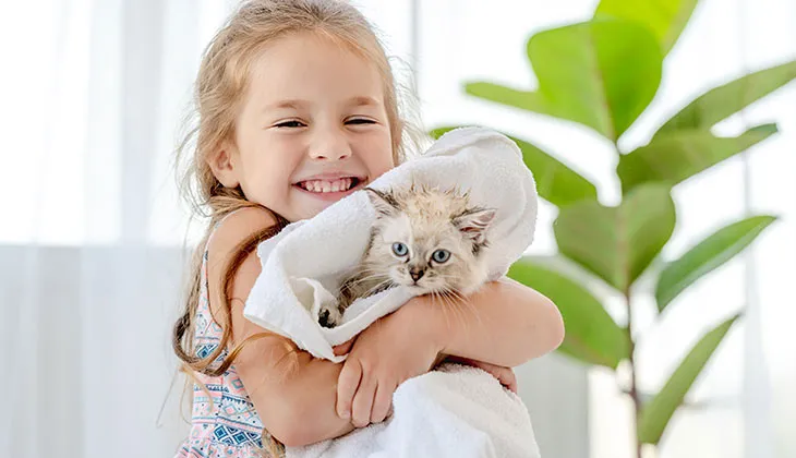 If you need to wash your kitten, start accustoming him to the washing process in small steps. Be patient, start slowly and wisely. If your cat shows signs of stress, such as purring, meowing and/or panting or breathing heavily, stop and try again in a few hours or the next day.